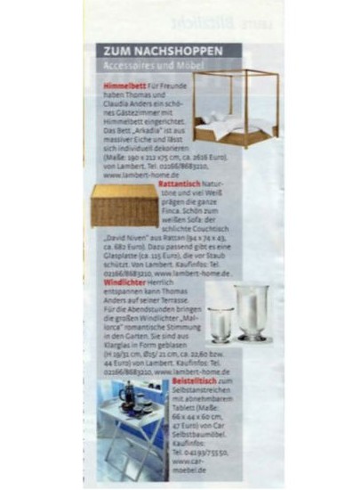 توماس : سلیقه من مشابه همسرم کلودیا ست. خانه ای با وسایل طبیعی و رنگ های روشن. گلهایی مثل orchids و gladioli در رنگ سفید. اگر کمی تلاش کنید میتوانید خانه خود را تغییر و زیبا کنید.